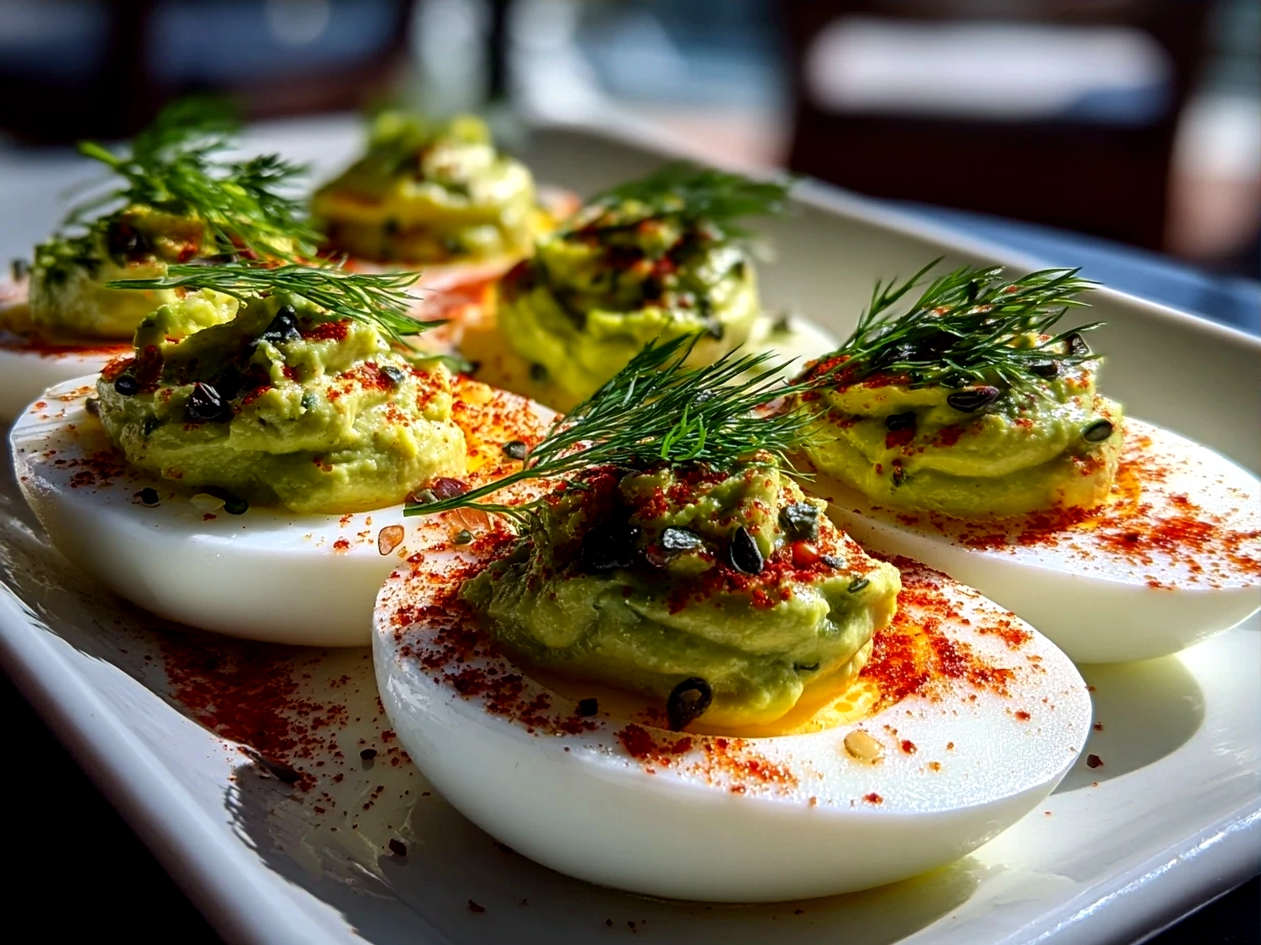 Avocado deviled eggs combine creamy avocado with classic deviled egg flavors for a fresh, healthy twist on a traditional appetizer. Perfect for parties or a quick snack.