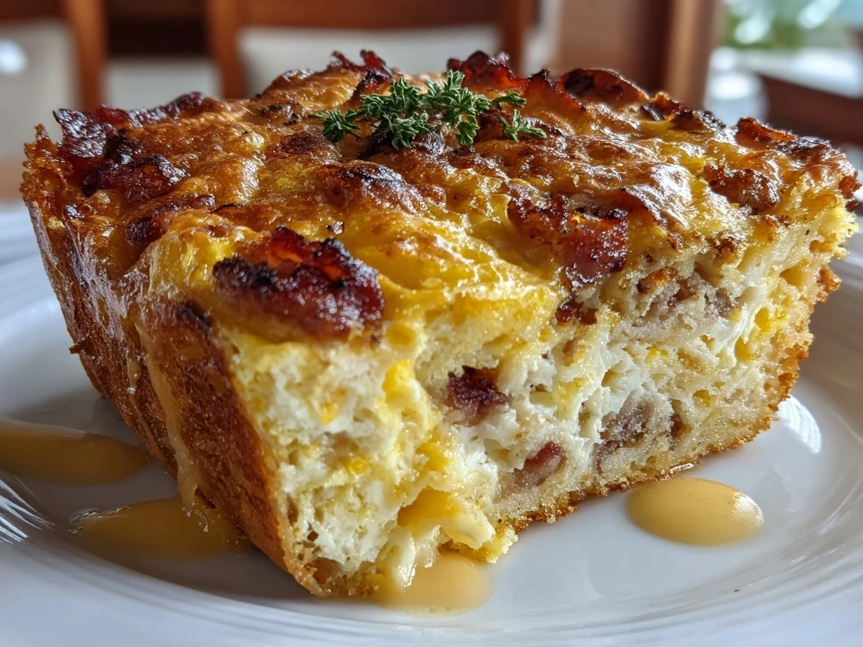 Start your morning with this hearty and flavorful Cheesy Breakfast Casserole, packed with eggs, cheese, and savory sausage for a satisfying breakfast or brunch.
