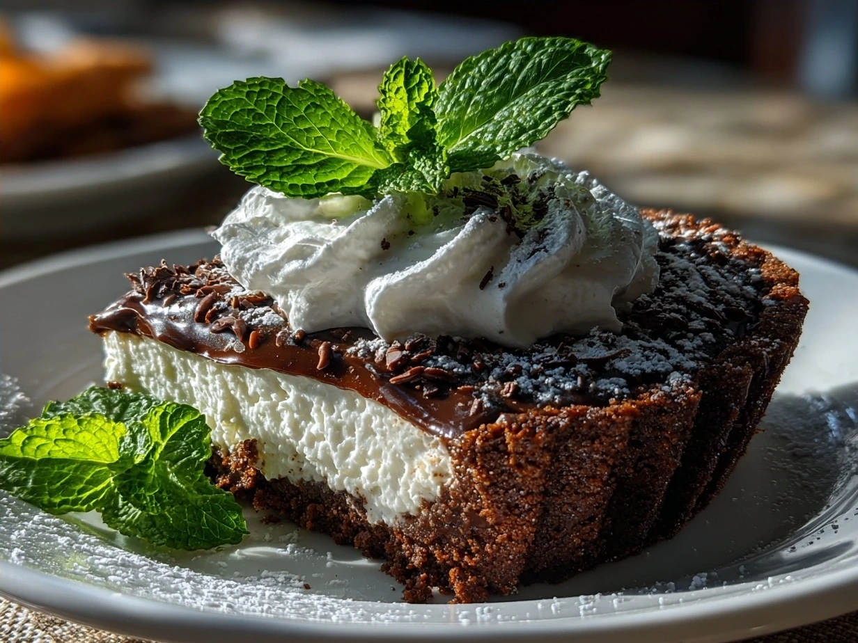 Indulge in a rich and refreshing Chocolate Mint Pie featuring a creamy mint filling layered over a chocolate crust, perfect for dessert lovers craving a cool twist.