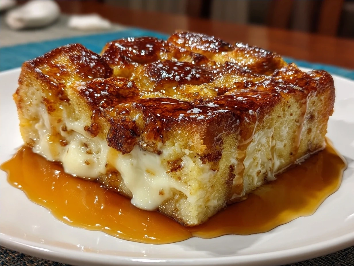 A warm and golden French Toast Bake fresh from the oven ready to be served