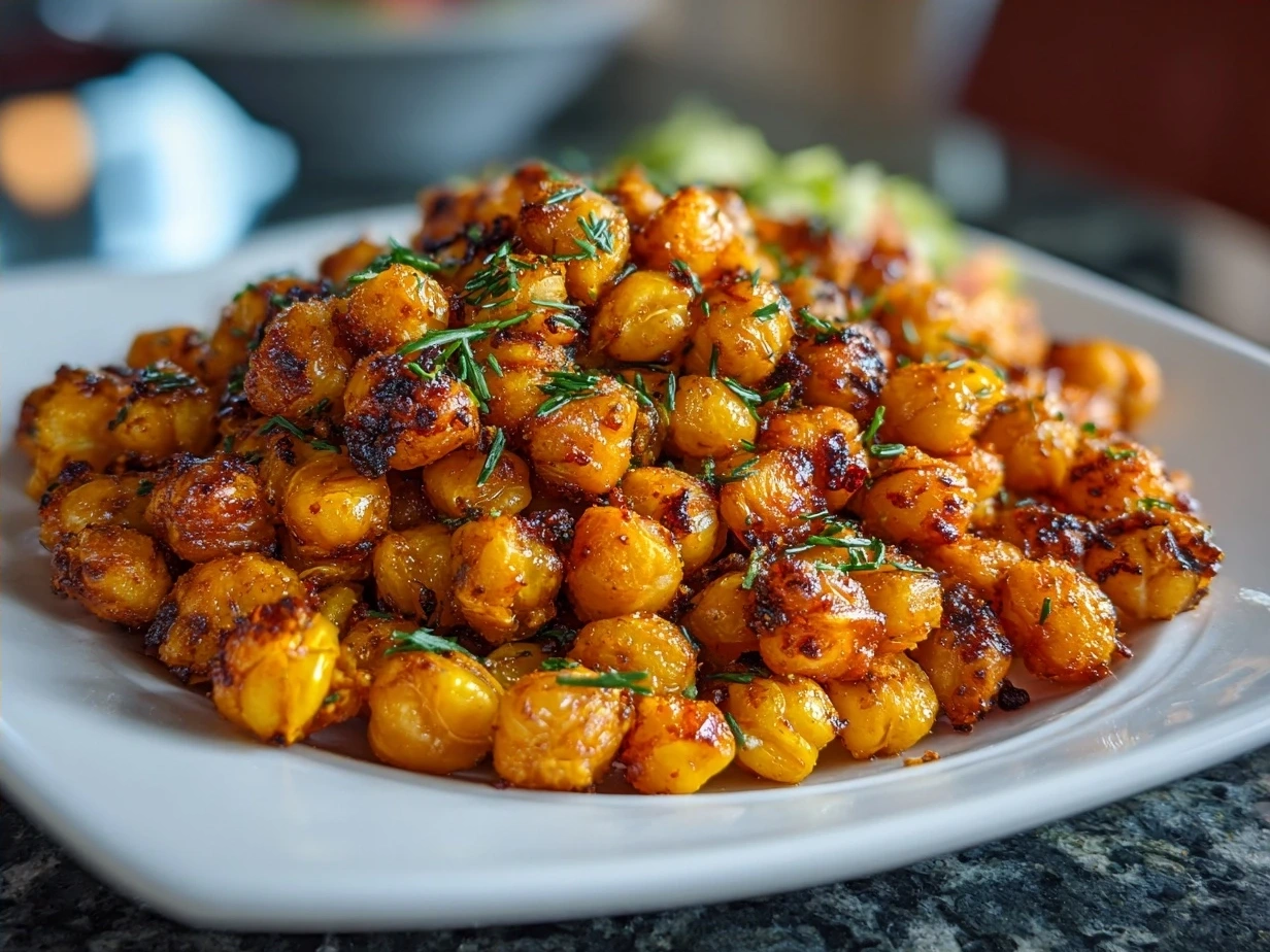 A crunchy and flavorful roasted chickpea and corn mix, perfect as a healthy snack or a protein-packed salad topper.