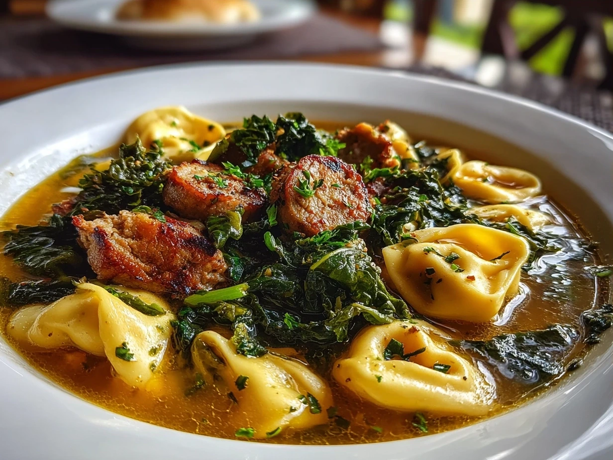 This hearty Tortellini Soup with Sausage and Kale blends savory Italian sausage, tender cheese tortellini, and nutrient-rich kale in a flavorful broth for a comforting and nutritious meal.